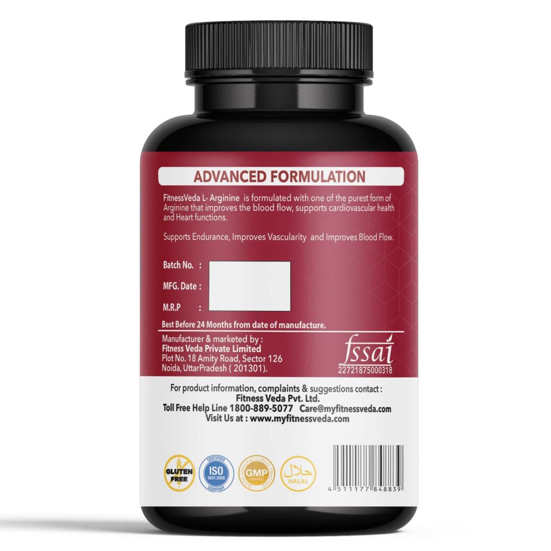 Fitness Veda L-Arginine Capsules HCI is a potent nitric oxide booster tha gives body the support it needs to reach new height.Helps in muscle buliding, growth & recovery.